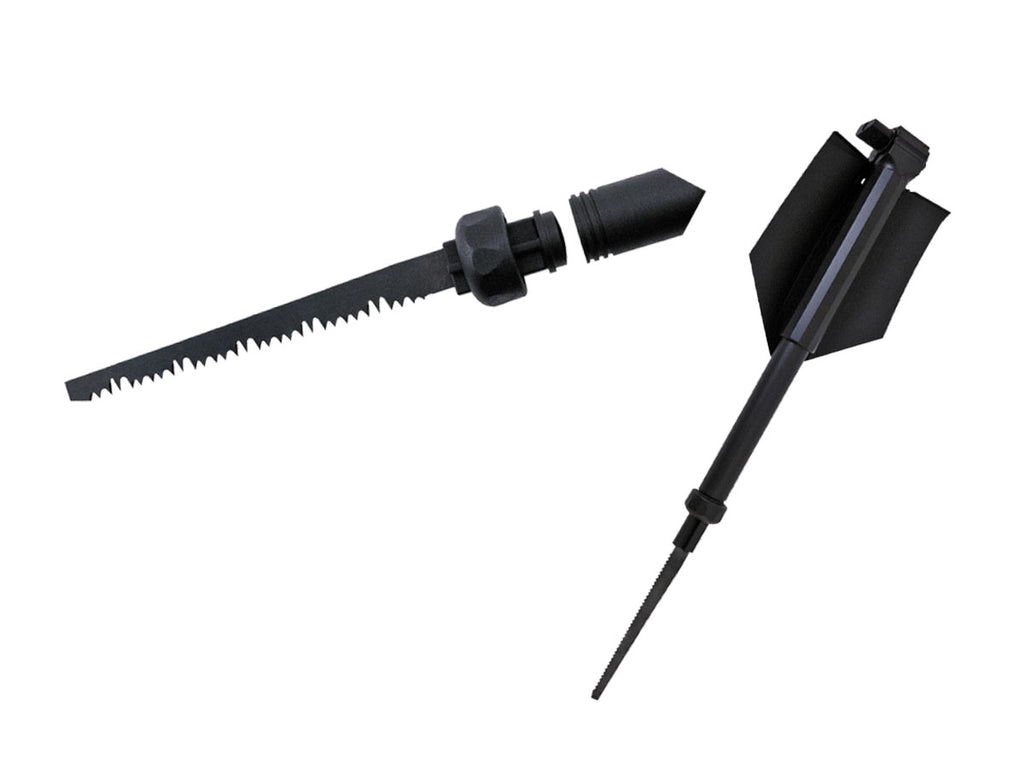 This durable camp shovel features collapsing handle for convenient portability, as well as storage space for a small camp saw.