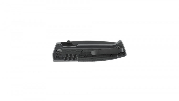 At the heart of this knife lies the Spearpoint blade, coated for durability and crafted from the exceptionally edge-retentive D2 steel. Measuring 92 mm in length and 3.6 mm in thickness, this blade is well-suited for a wide range of demanding tasks in everyday life, professional deployment, or outdoor activities. The blade securely locks into place via a stainless steel liner lock and can be effortlessly opened using the detachable thumb stud on either side, drawing inspiration from the Walther PDP pistol's magazine release mechanism.